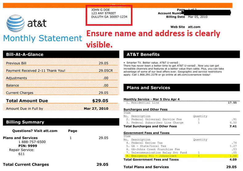 Bill (Utility bill, Power, Water, Electricity, Bank statement, Tax return, etc) No screenshots allowed.